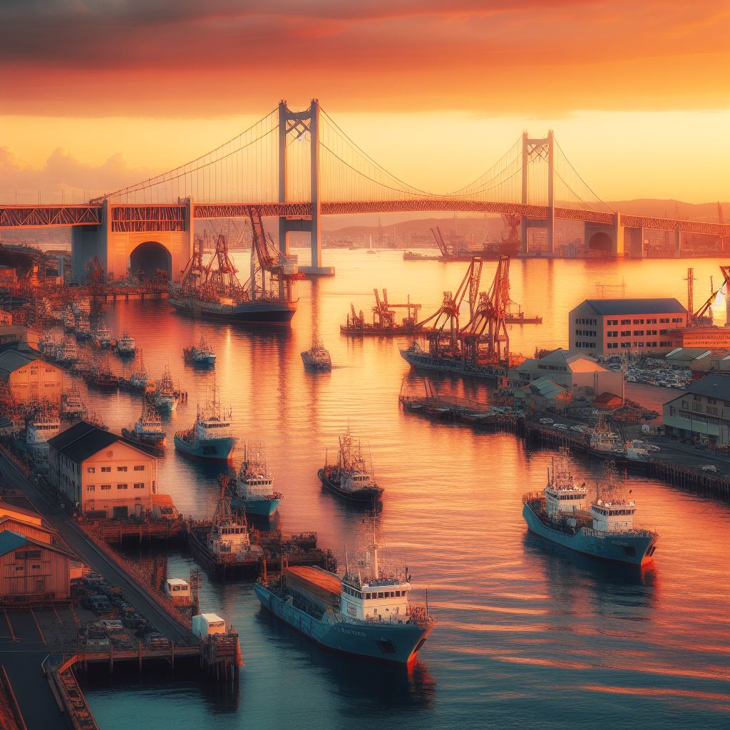 4. Economic Center: Currently, Shimonoseki Port operates ferry routes with Busan, contributing significantly to trade and travel between Japan and Korea. Additionally, Shimonoseki is famous for its fish market, especially for fugu (blowfish).