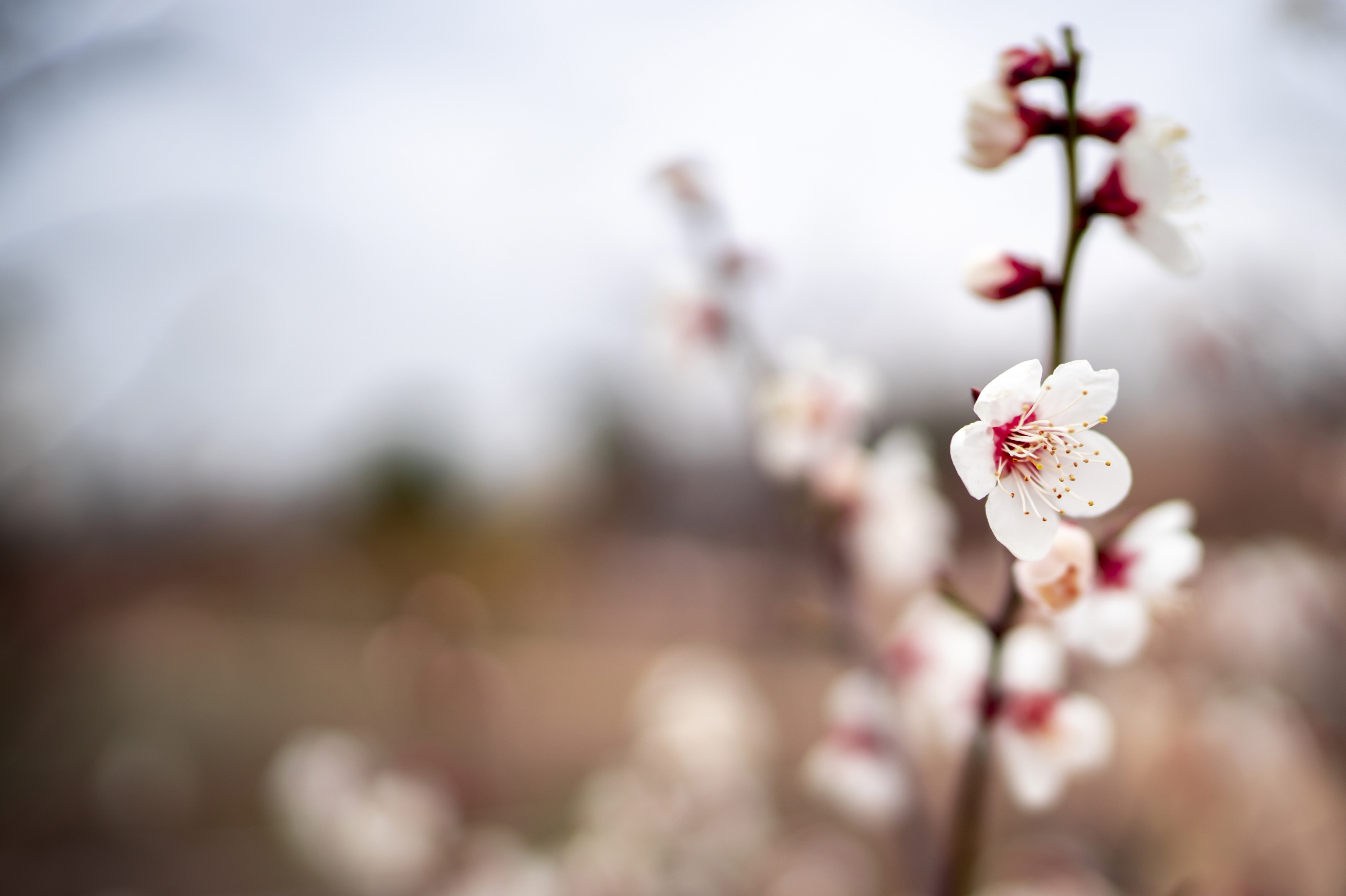 본격적인 봄의 계절로 들어왔습니다. 겨울을 상징하는 듯한 칙칙한 갈색들 사이로 하얗고 붉은 색이 돋아납니다.