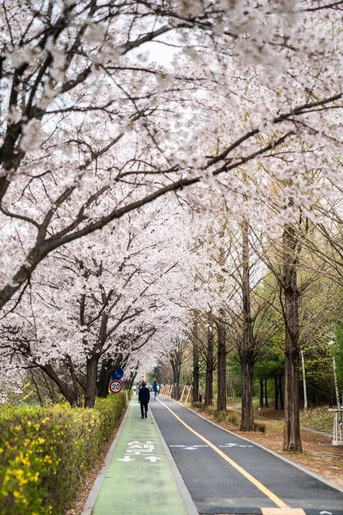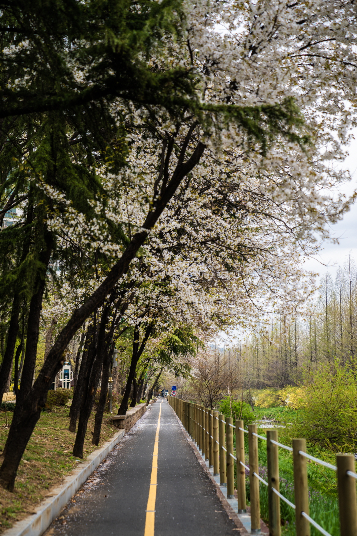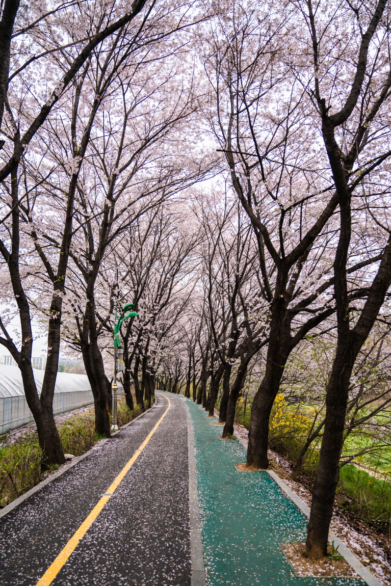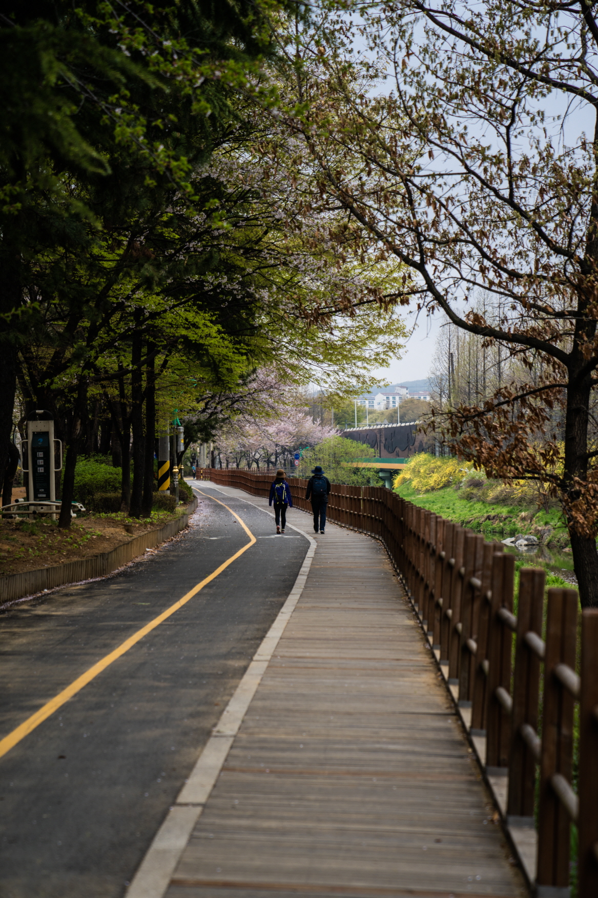 오른쪽은 방음벽입니다. 다행스럽게도 쭉 뻗은 나무들 덕분에 삭막함은 없네요.