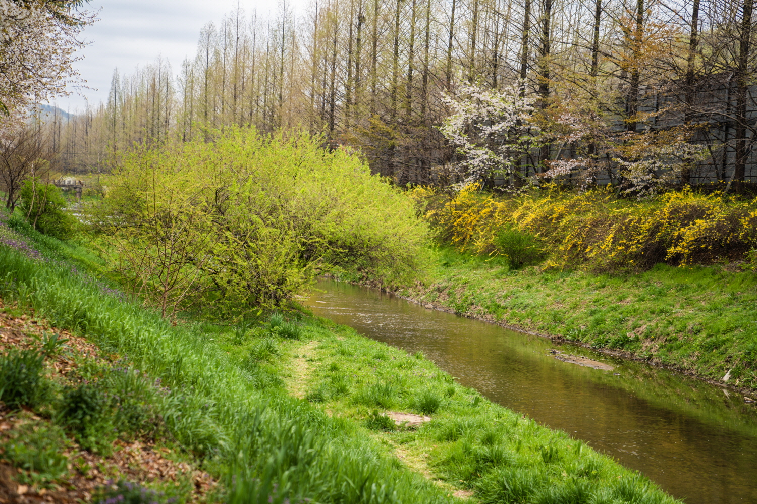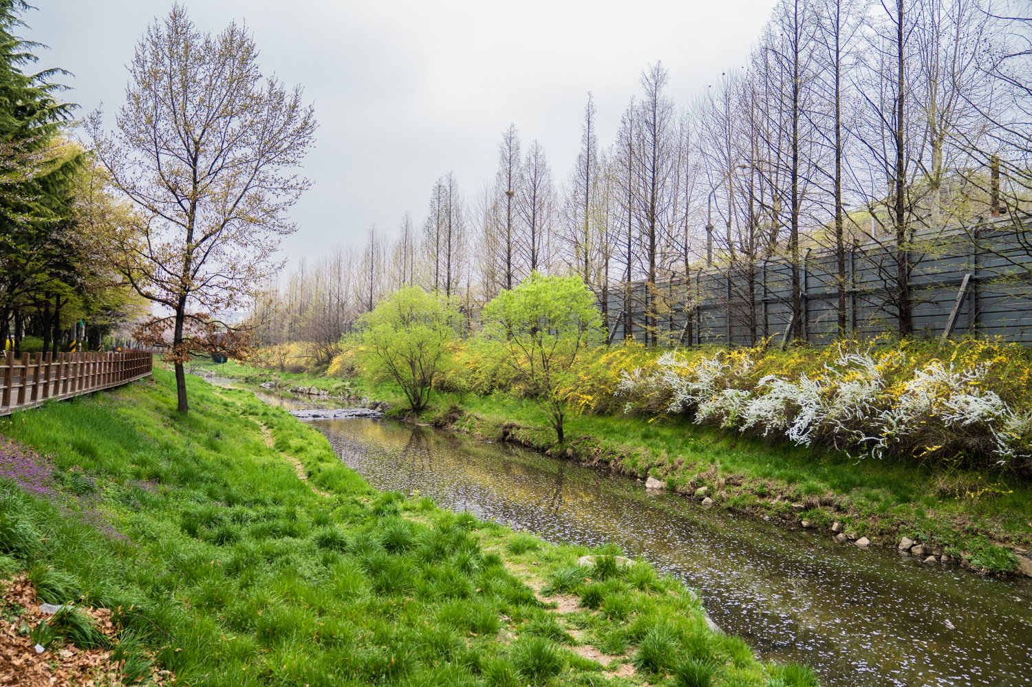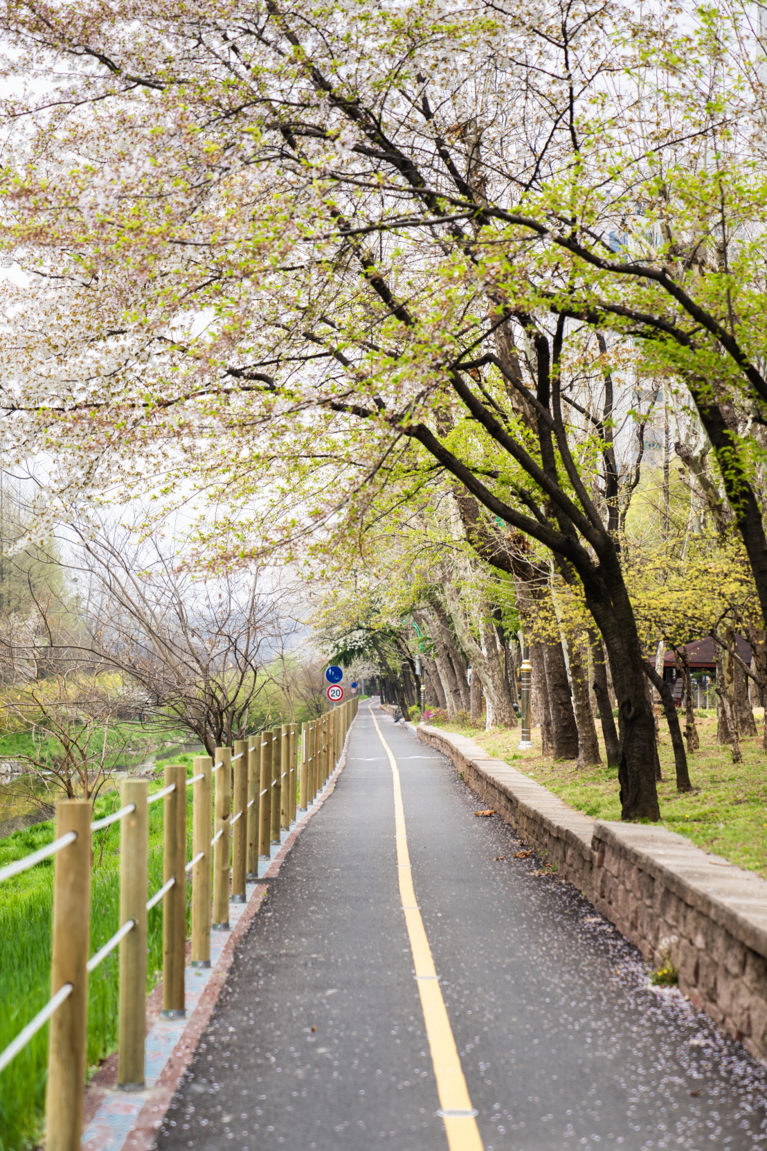 오른쪽은 방음벽입니다. 다행스럽게도 쭉 뻗은 나무들 덕분에 삭막함은 없네요.