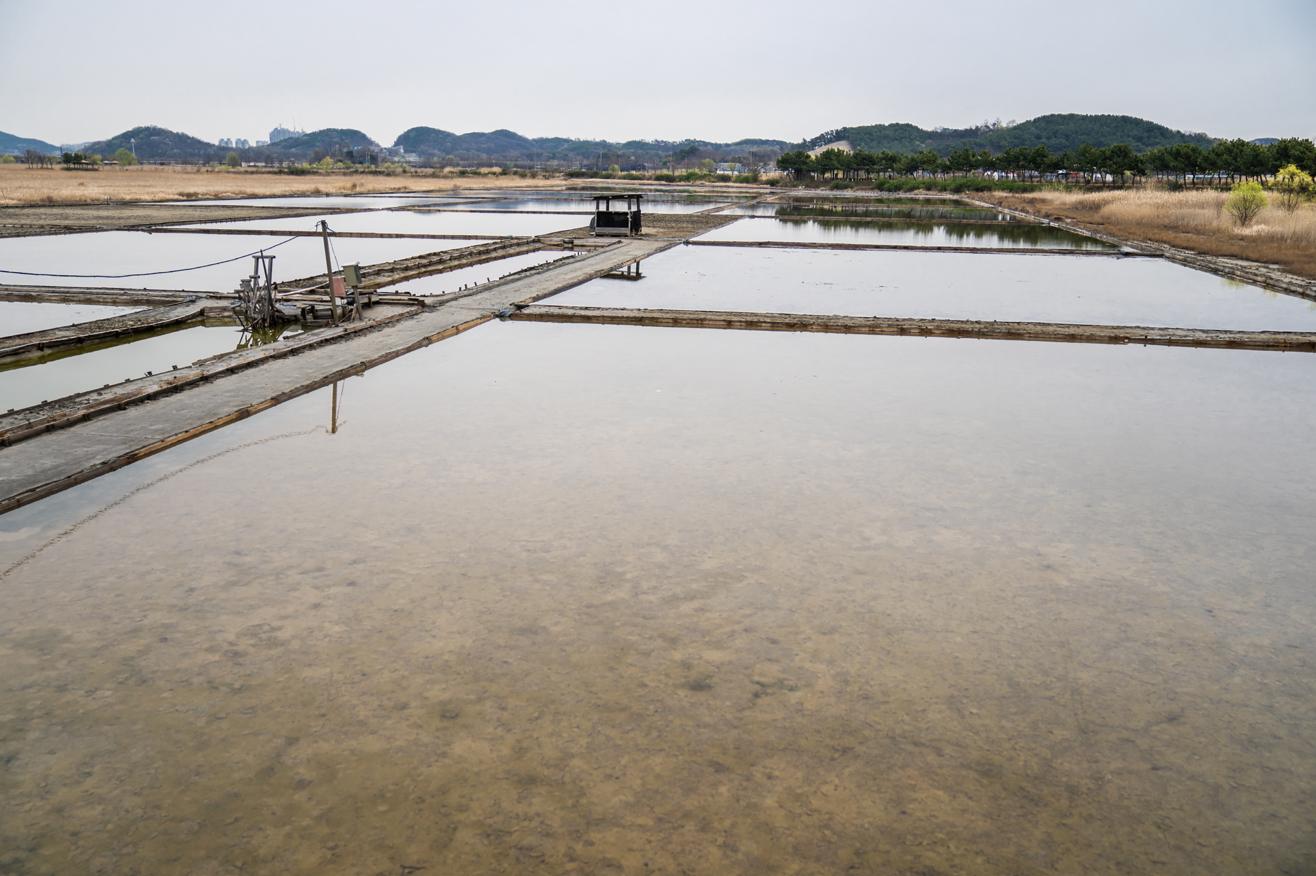 염전에 물을 댄 상태네요. 요즘같이 갑자기 더워진 날씨에 소금 만들기 좋은 환경인것 같습니다.
