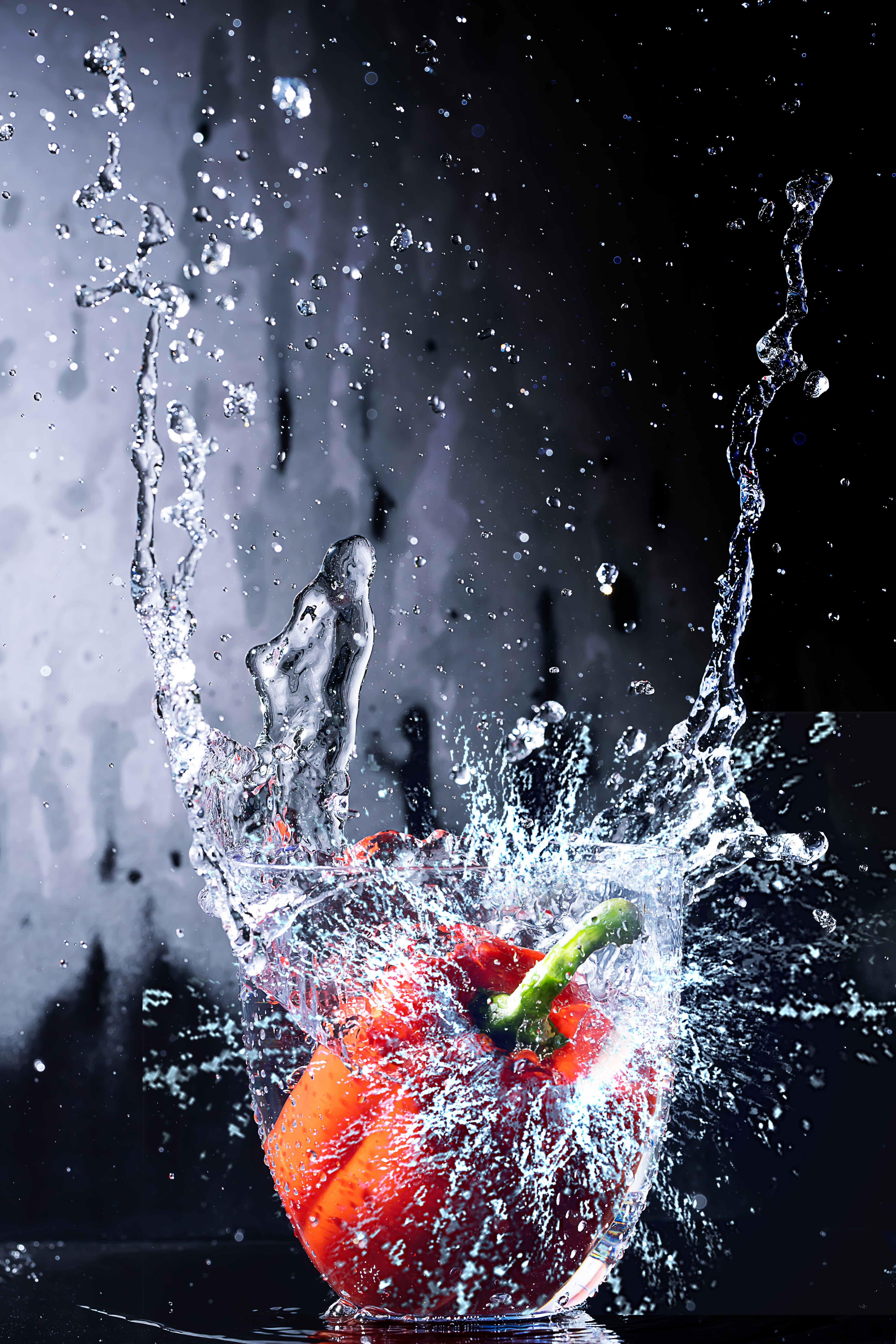 1. 파프리카 떨어트리면서 물이 튀어 오르는 모습 담기