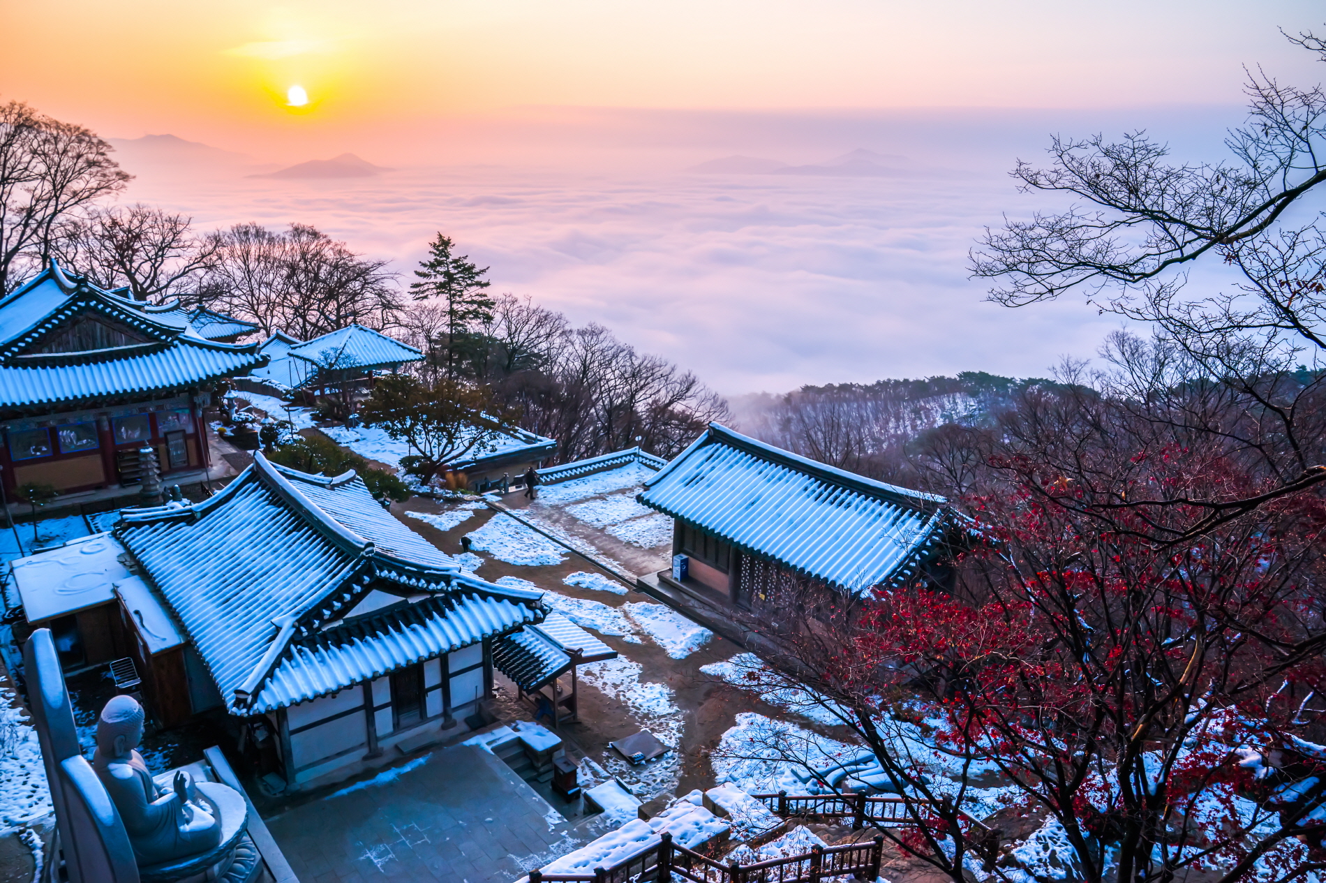 붉은 기운의 일출과 함께 펼쳐진 운해는 더없는 기쁨이었다.