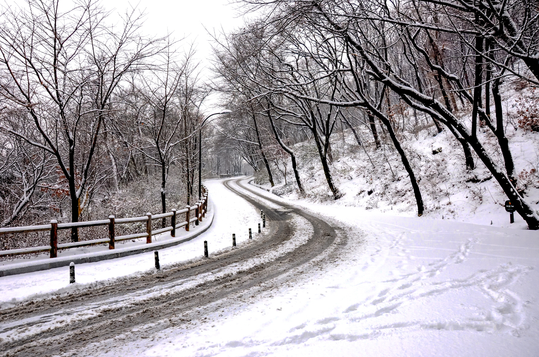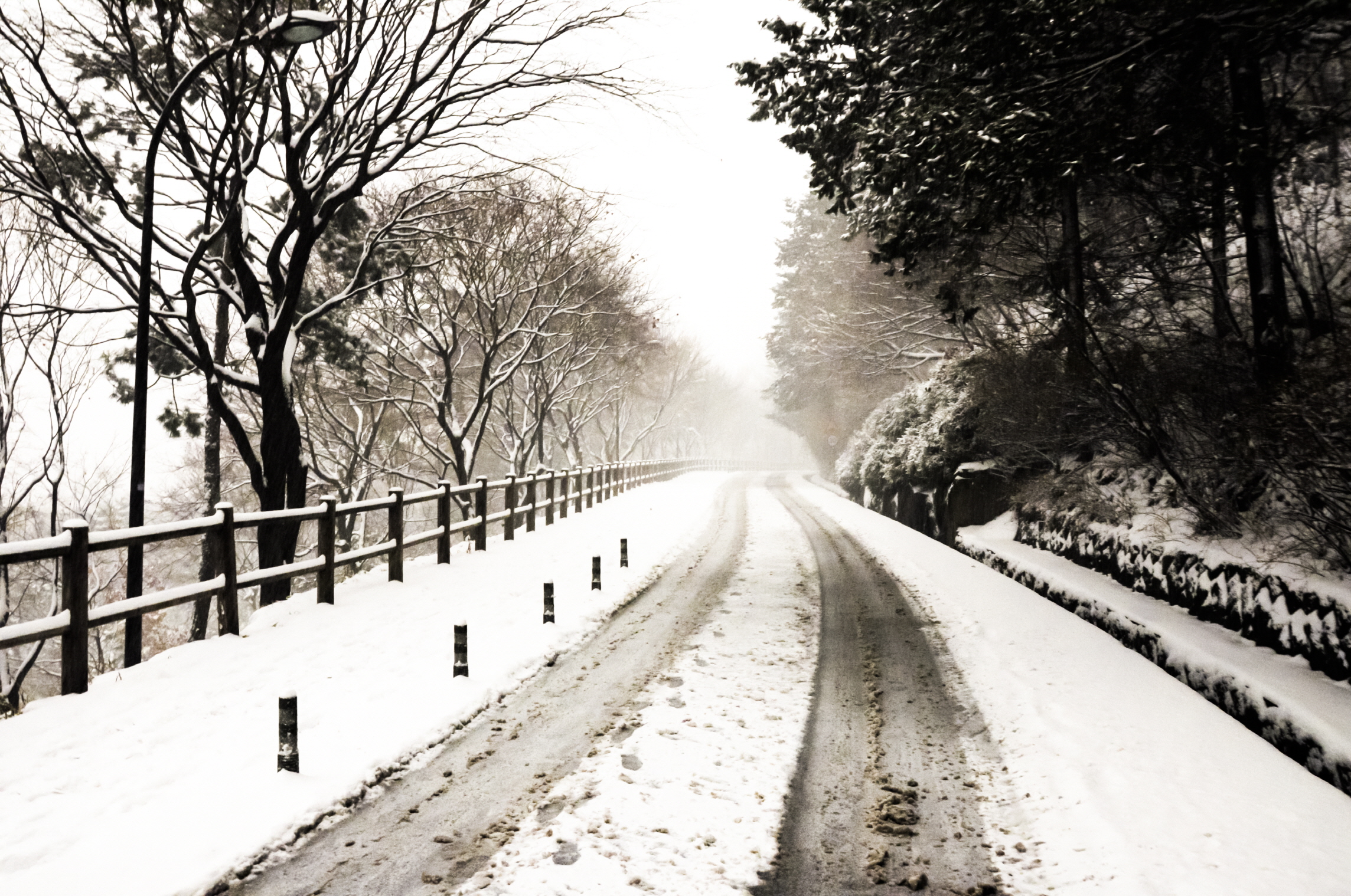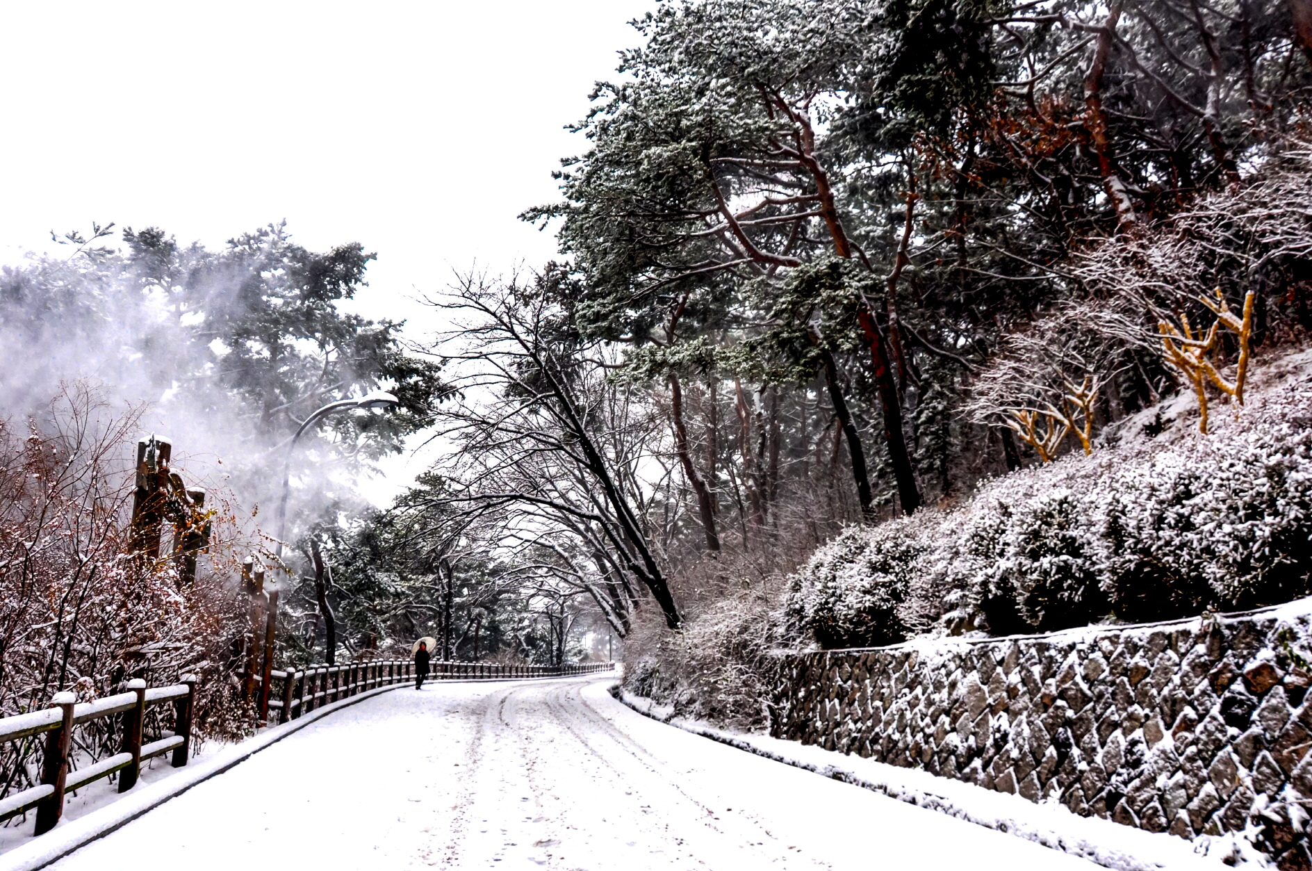 눈이 한참 내린길을 걷다보면 어느 정면에선 이국적 느낌마저 든다.