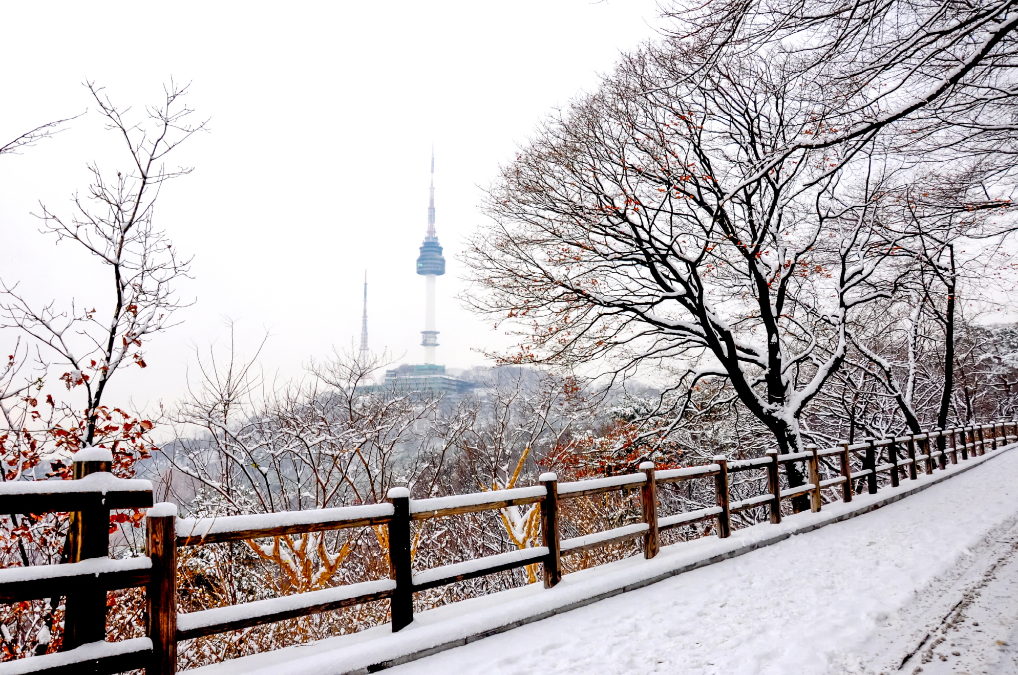 눈오는 남산에서 서울을 즐겨보는것도...