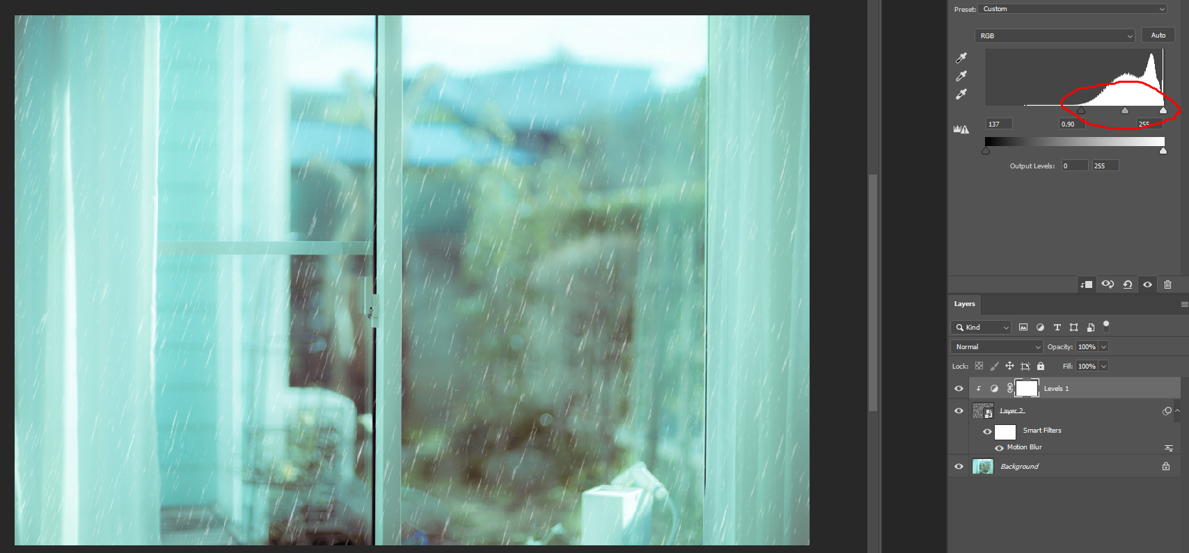 저 비의 양을 조절하기 위해서 레이어 아랫부분에 있는 adjustment layer를 클릭 Level을 선택합니다.