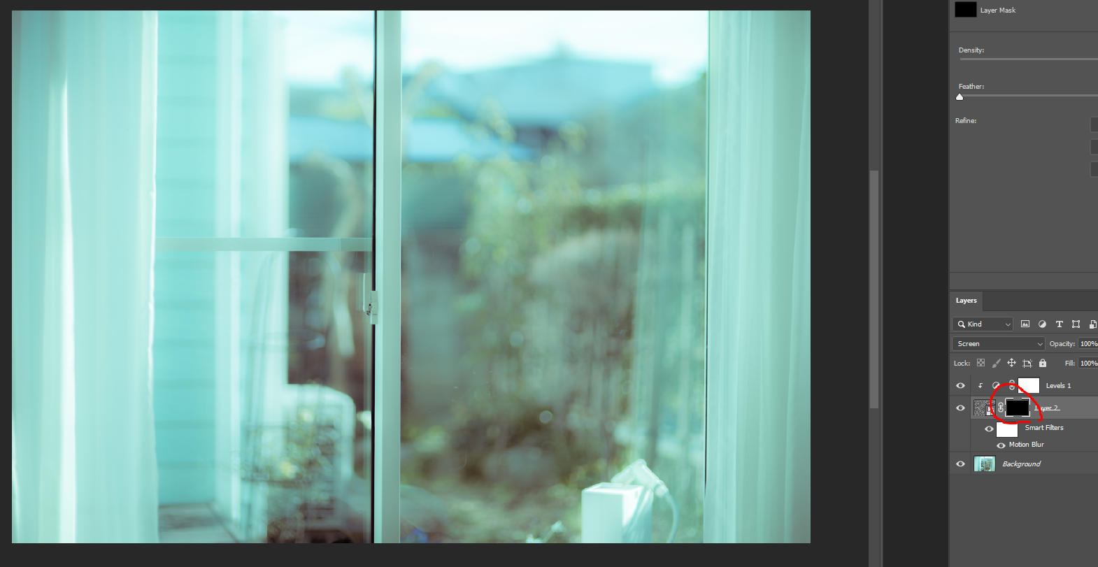 Layer2를 선택된 상태에서 Filter(필터) - Blur(블러)-Motion Blur(모션블러) 실행합니다.