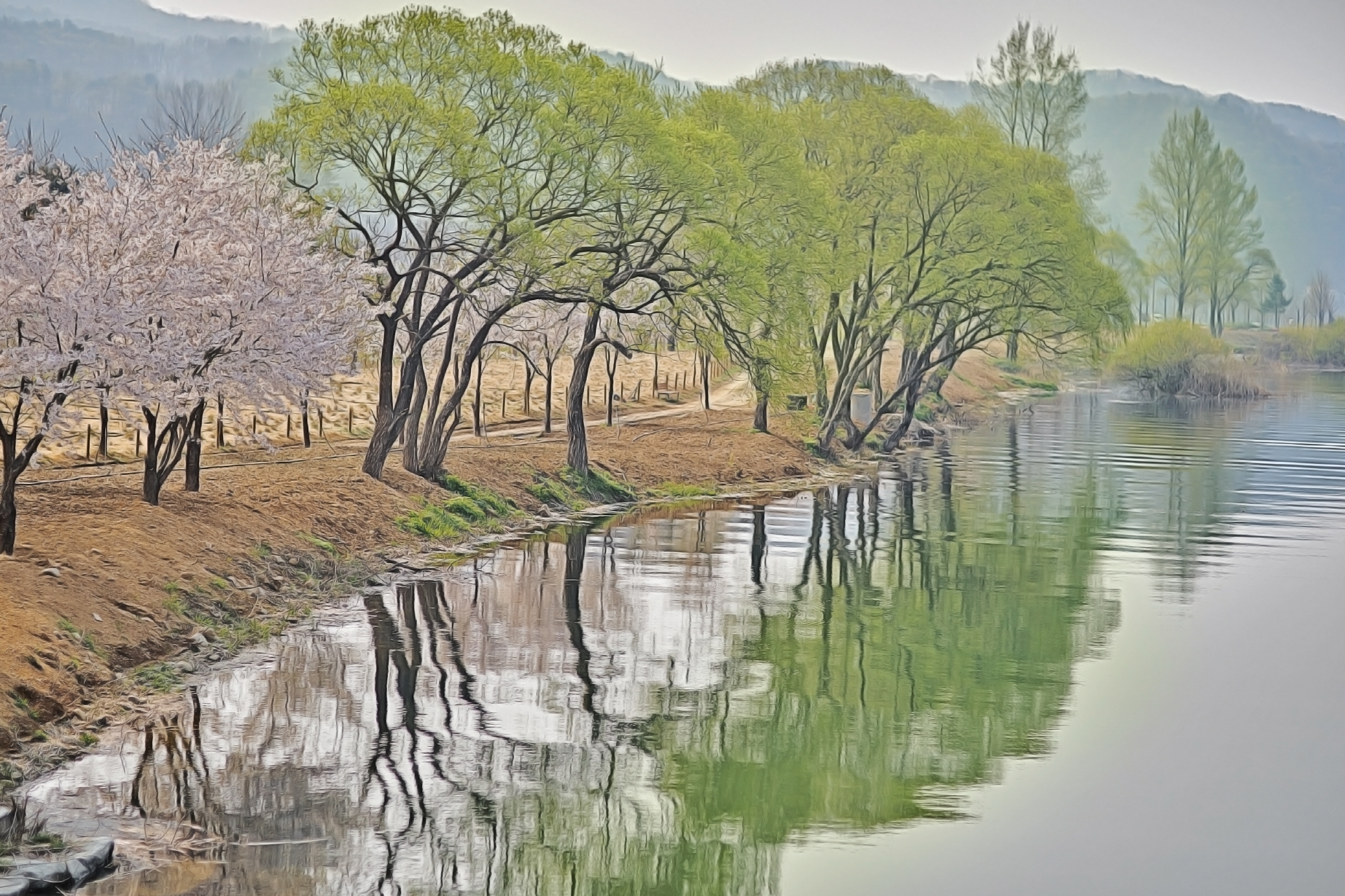 동네가 참 이뻐요. 선명하지 못한 반영이 오히려 분위기는 더 좋습니다.