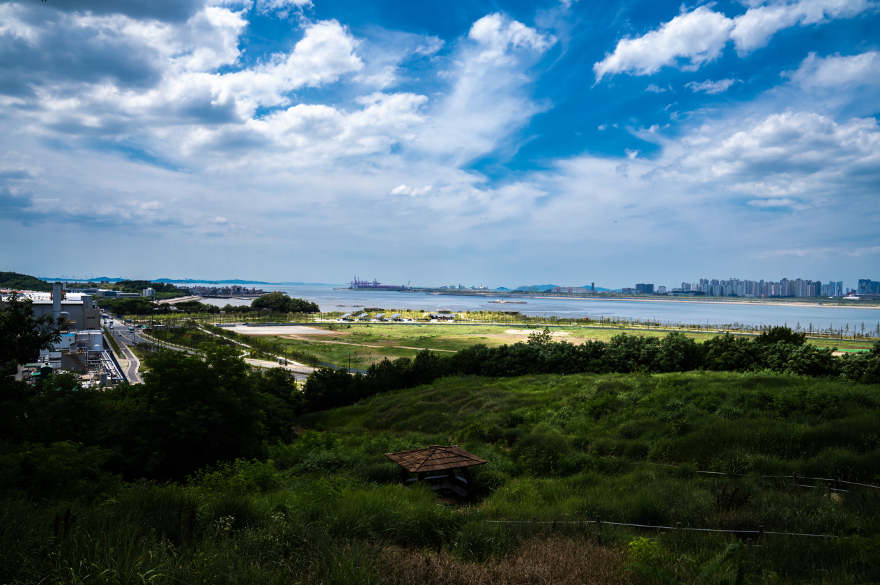 옥구공원에 도착했을때 날씨 좋은 날이라 푸른하늘과 함께 멀리멀리 시원스러운 풍광이 펼쳐졌습니다.