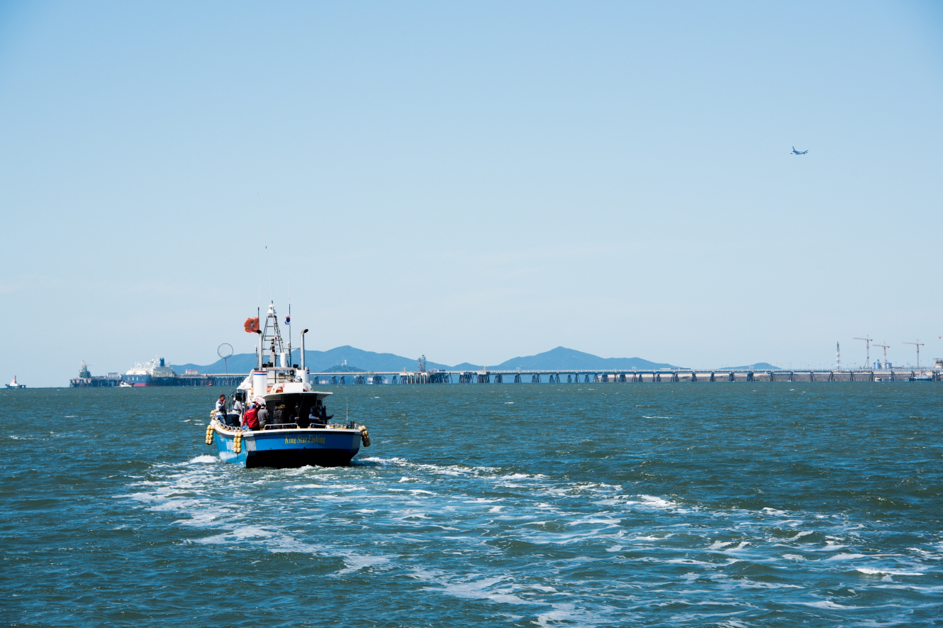 시화방조제를 달리다 보면 중간쯤에 오른쪽으로 선착장이 보입니다. 크기가 작습니다.