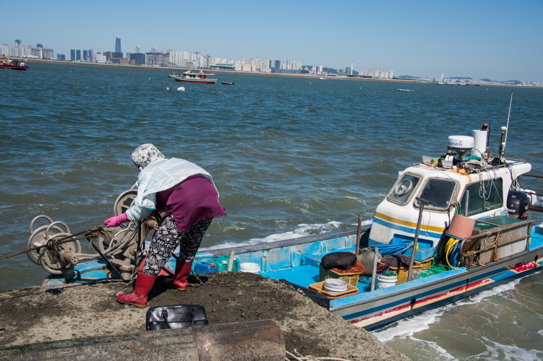 사진처럼 고깃배를 기다리기 위해 바다를 감상하시는 분, 한창 일하시는 분...