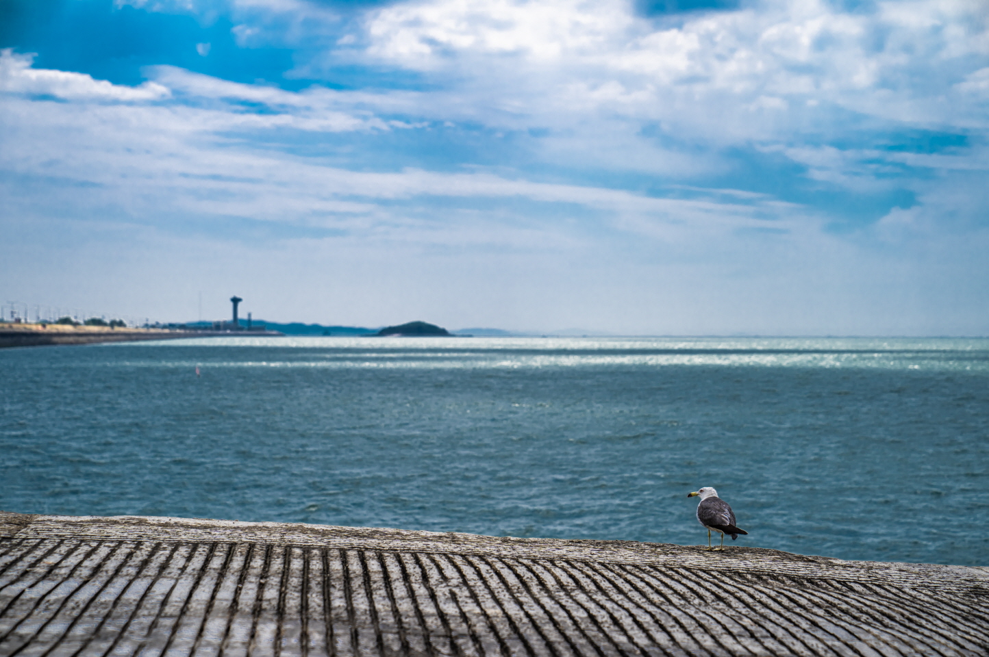 갈매기가 드론처럼 하늘위에서 감시 하는것 같습니다.