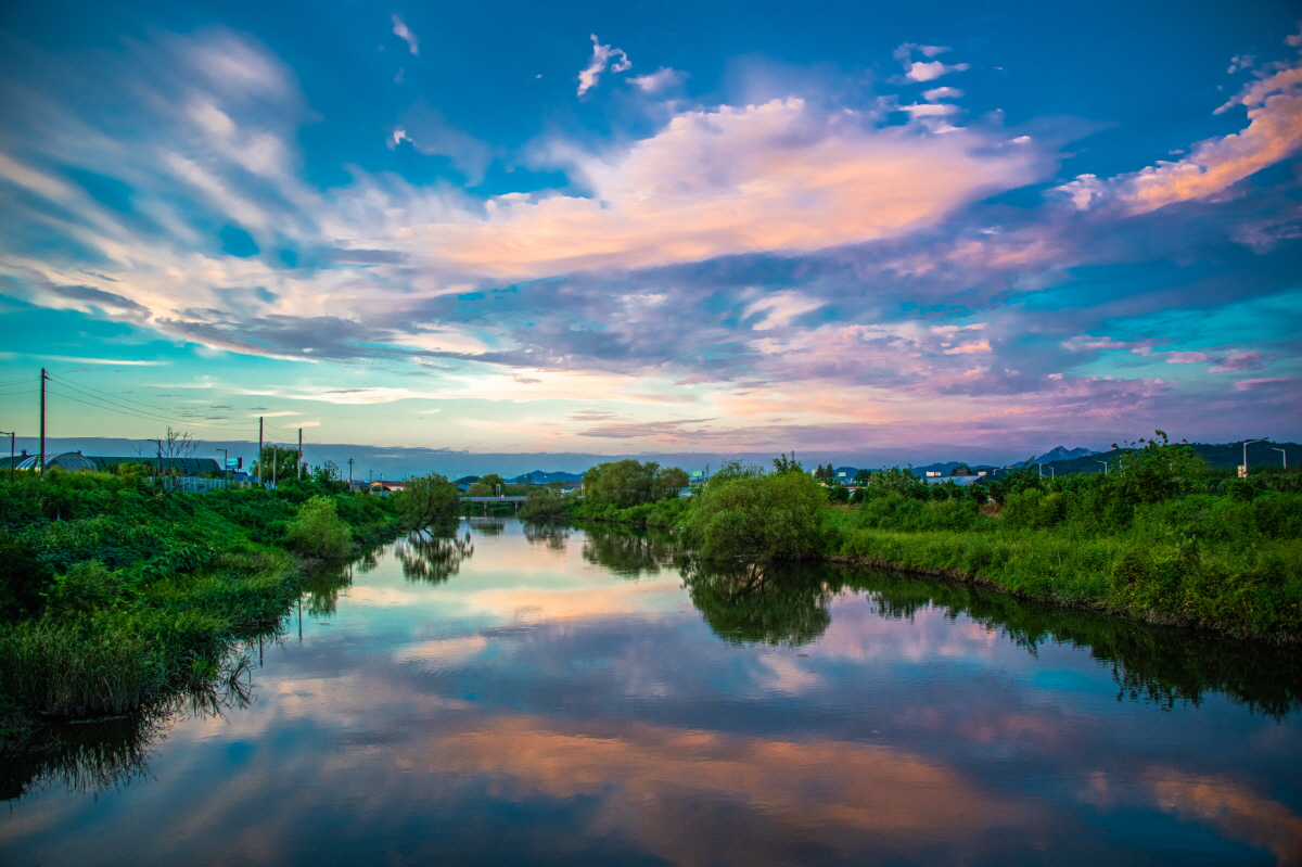 붉은 구름이 길게 띠를 형성하고 있어 최고의 장면으로 삼고 싶습니다.