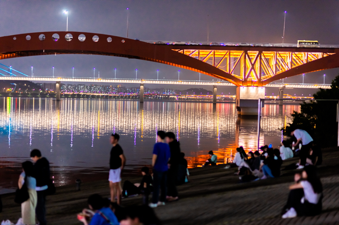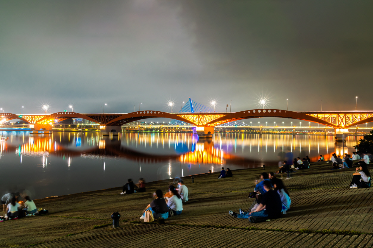 이 곳은 예전에 자전거 라이더들의 성지라 불리던 곳이었는데 라이더들은 볼 수 없고 많은 사람들이 한강을 바라보며