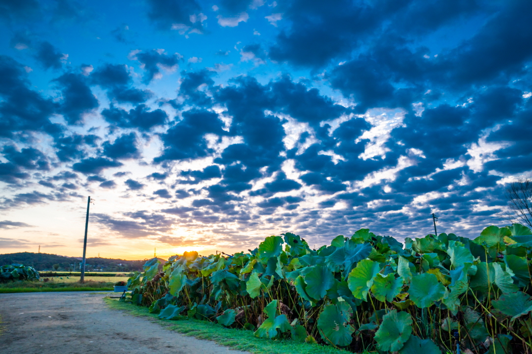 관곡지의 아침은 일출이라 하기엔 해가 좀 높이 떠있지만 어쨌든 요즘 풍성해진 구름 덕분에