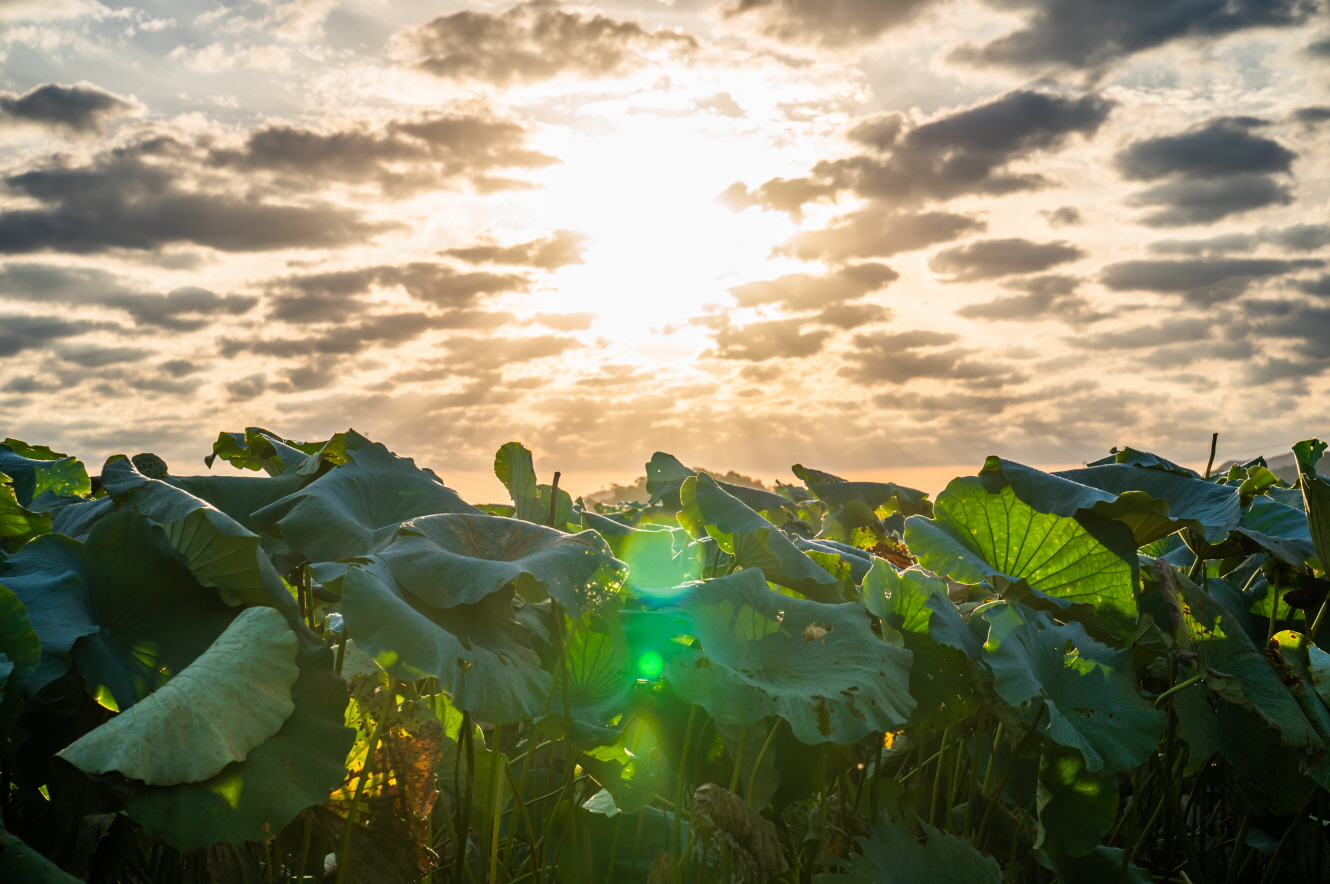 관곡지의 연꽃은 끝났지만 아침은 빛났다.