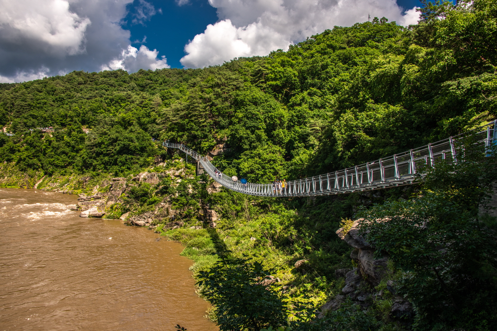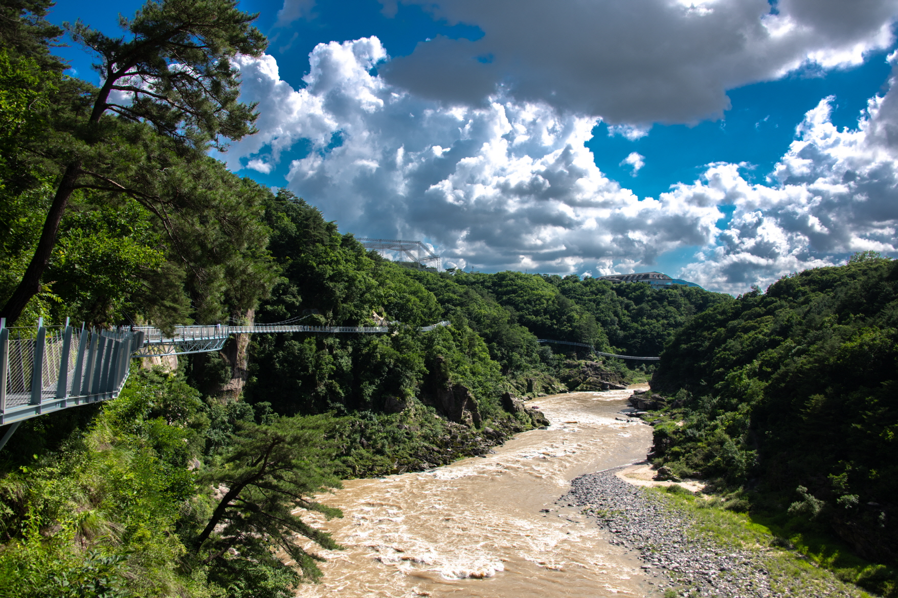 많은 비가 내렸음을 바로 알 수 있을 정도로 강물이 온통 갈색이다.