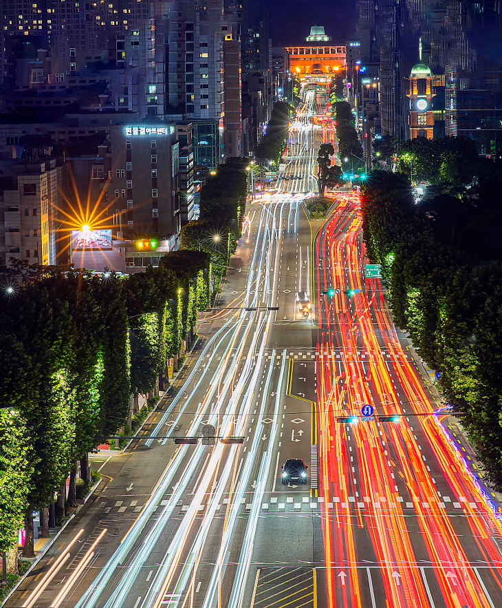 자동차의 궤적은 예술의 전당을 향해 이어지면서도, 한 가운데 한 대의 자동차만 선명하게 남아 있었습니다.