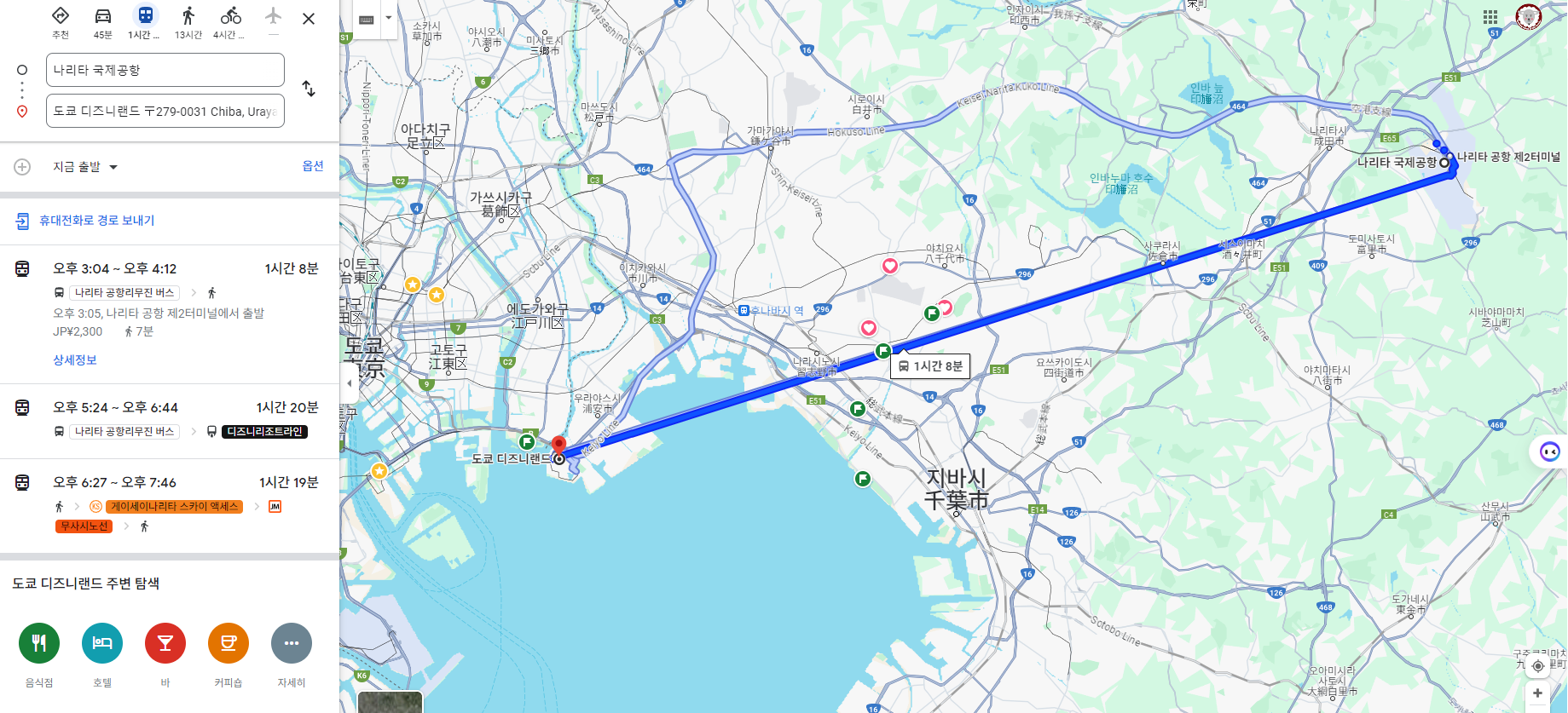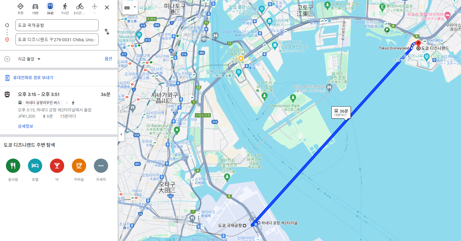 구글지도를 참고해서 하네다 공항에서 디즈니랜드까지...얼마나 걸릴까요?