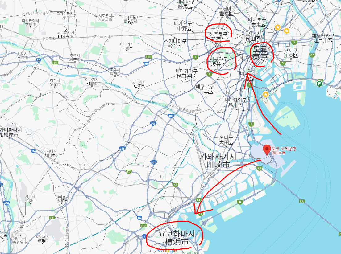 한국인이 많이 찾는 신주쿠, 시부야, 롯본기, 도쿄중심 멀리 요코하마등 하네다 공항을 이용하는것이 편리합니다.