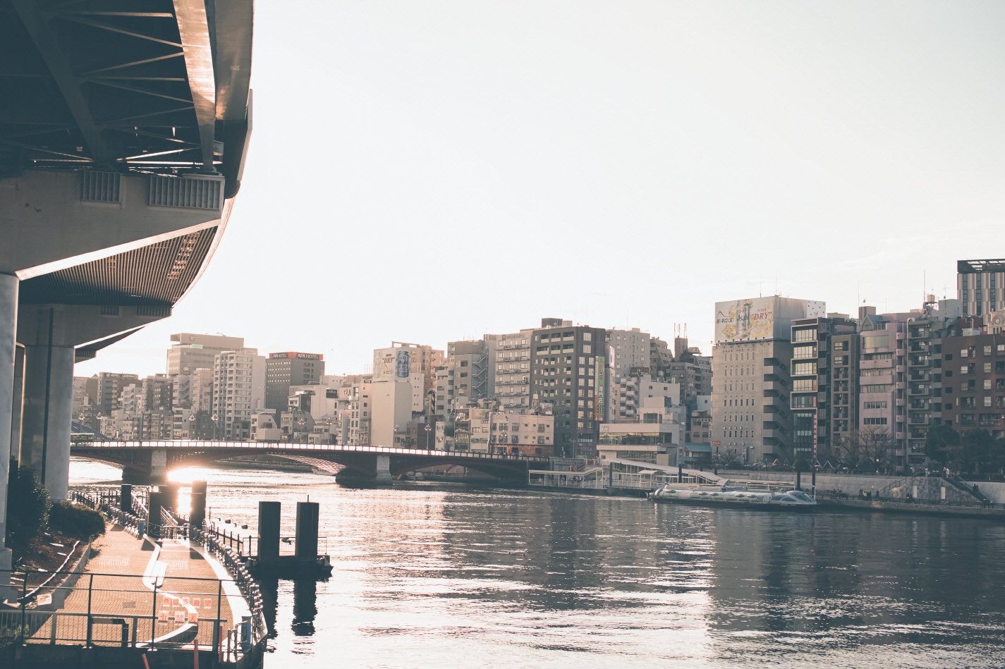 앞에 보이는 강이 스미다 강이고 앞에 보이는 다리가 아사쿠사바시 입니다.