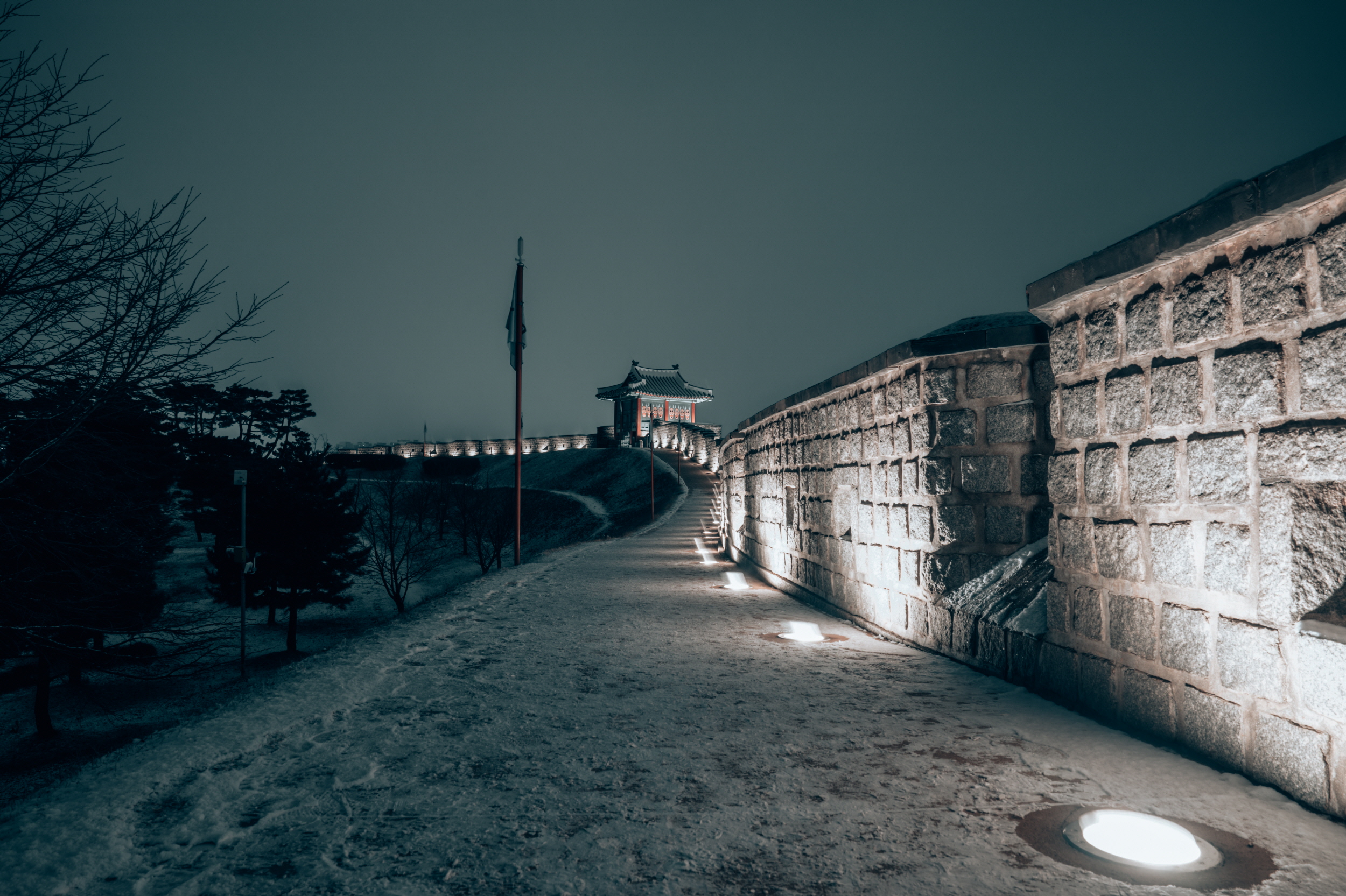 눈 내리는 사진 방화수류정 수원화성 야경 나들이 수원 화성행궁은 언제나 좋다.