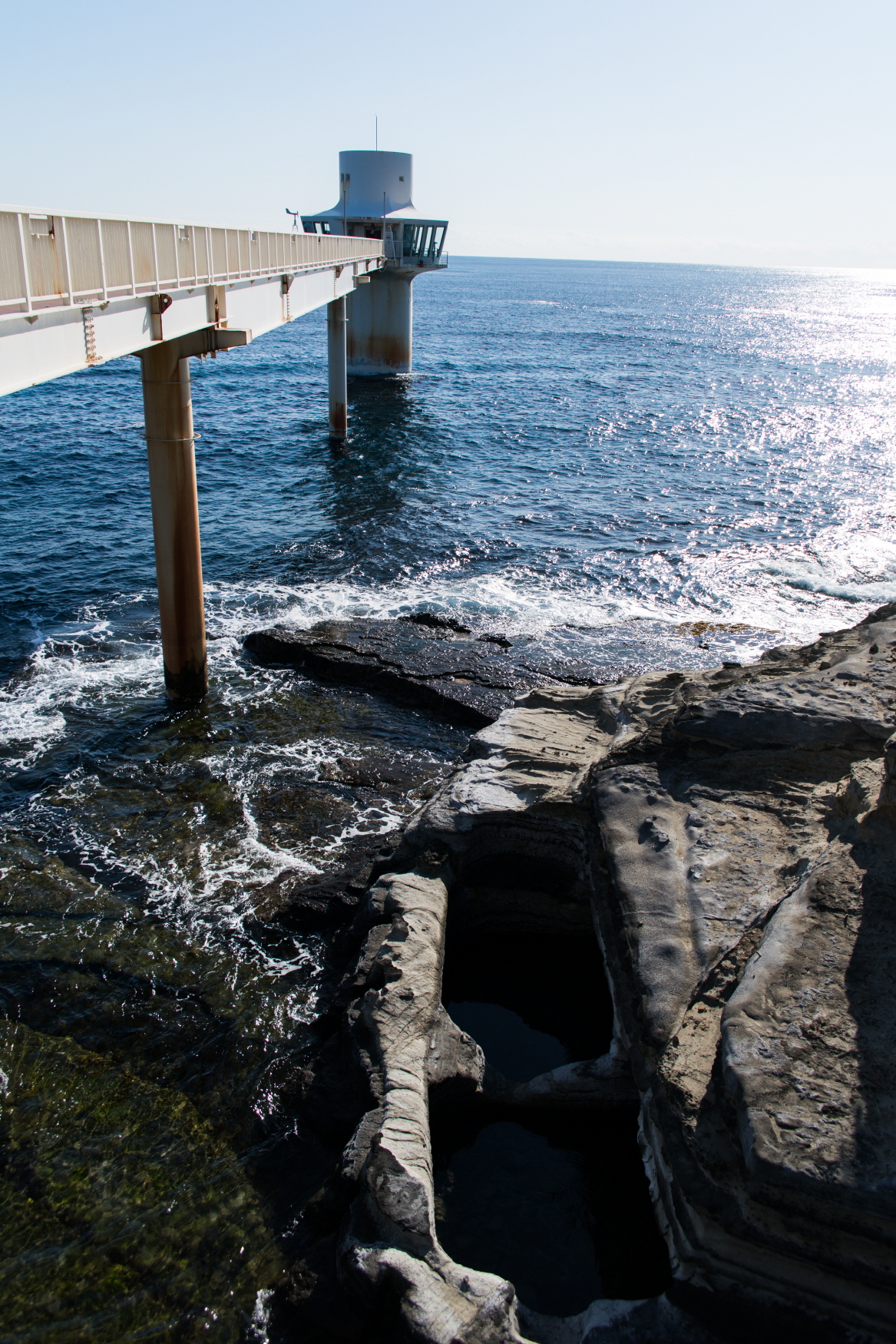 이 다리 위에서는 아래로 눈길을 던지면, 파도에 의해 깎여진 암반과 어항의 흔적들을 확인할 수 있습니다.