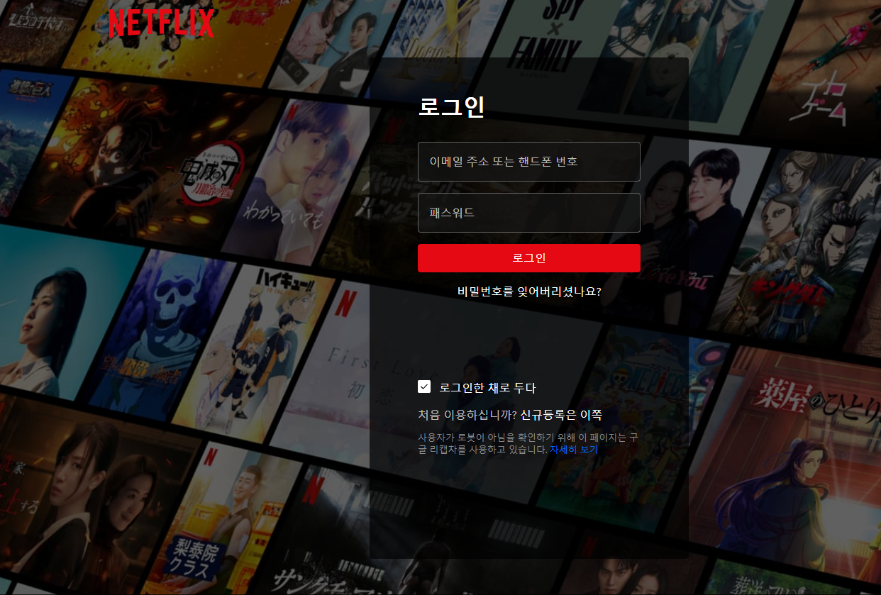 평상시처럼 넷플릭스 홈페이지에 접속해 보자