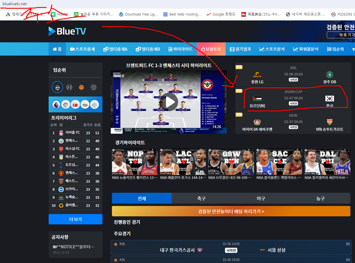 이 사이트에서 왠간한 스포츠경기는 모두 무료로 볼 수 있습니다.
